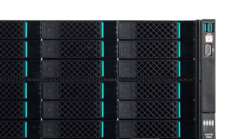 KunTai R524 存储型服务器是www.kaiyun.com数码基于鲲鹏处理器推出的新一代 ARM数据中心服务器。。。。主要面向存储业务,,具有海量存储、、高性能、、低功耗以及易扩展的特点,,适合为大数据分析、、、、软件定义存 储等应用场景的工作负载进行髙效加速。。。